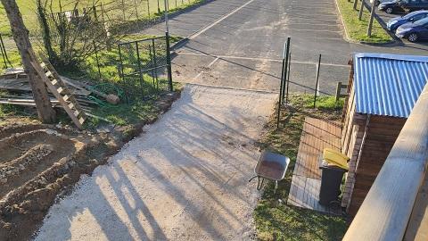 Mise en place de grave dans notre nouvelle entrée côté parking.
